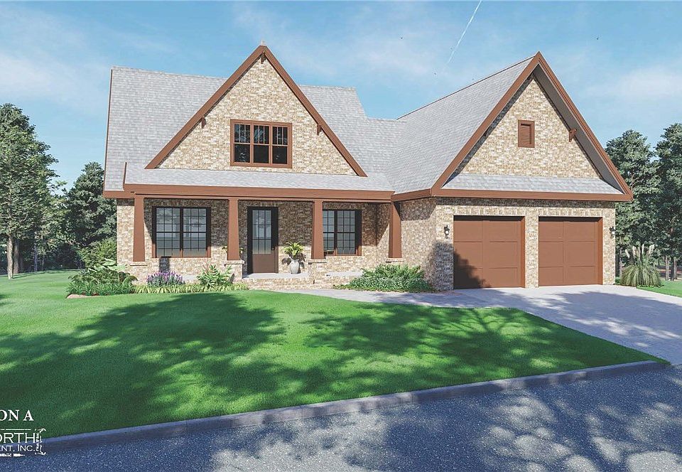 Entered for comps. The Dutton Plan showcases cottage architecture a brick & stone exterior & a charming covered front porch. Foyer opens to a formal Dining Room. Living Room offers a gas logs fireplace with open glass stationary panels that look out over covered rear porch. Galley-style kitchen w/ eat-in island, custom cabinetry, walk-in pantry, tile backsplash & granite countertops. Mudroom, Laundry & Powder Room off garage entrance. Laundry room offers access into master closet. Master bath w/ dual sink vanity & large glass surround shower. Bedrooms 2 & 3 on opposite side of home, each w/ walk-in closet & a jack-n-jill bath between, each w/ private vanity. Upper level w/ Bed 4/Bonus & bath. Hardwoods in all shared living spaces, carpet in all bedrooms & ceramic tile in wet areas. All plans & specifications are subject to change without notice.