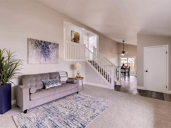 This charming 3BR/2BA home was recently updated throughout and boasts an open floor plan, vaulted ceilings, gorgeous new staircase, new flooring throughout, updated fixtures and fabulous outdoor space perfect for entertaining! It feels brand new! The kitchen features new quartz countertops, new stainless steel appliances, freshly painted cabinets, new light fixtures and breakfast island. Both bathrooms have also been updated. Additionally, the inside and outside were just painted and all new windows were installed. Retreat to the sizeable upper-level master bedroom with walk-in closet and double doors accessing the deck. Outside backs to open space with a large concrete patio and a deck with a mountain view. Incredible location close to E-470, shopping, restaurants and walking distance to Mracheck Middle School and Rangeview High School. Buyers Home Warranty is included. This one is ready for you to move right in and enjoy!