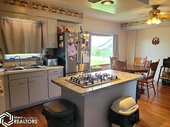 COUNTRY LIVING WITH BEAUTIFUL VIEWS!!! Minutes west of Sigourney! Hardwood floors! Brand new septic system, brand new roof, soffit, & gutters, brand new rural water pit. Brand new attic insulation. New gas cooktop, island countertop, & faucet. The main floor of the home features a LARGE living room, spacious kitchen with dining area, HUGE bathroom/laundry room, beautiful foyer, and enclosed back porch. The upper level features 3 bedrooms (each with large, walk in closets) & a full bathroom. Outside there is a large shed/barn and a one car garage. Home also features updated/newer wiring, plumbing, & water heater. Home is connected to rural water but has the capability of being functional with well water. Refrigerator, washer, & dryer are negotiable. Cooktop, wall oven, & chest style freezer in basement are included. Plenty of room to build a shop of your dreams!!! Lot recently surveyed with lot pins & metal stakes installed. LP tank is rented. Call to schedule a showing today!!!