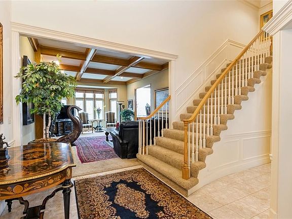 Beautiful Country Home on 1.8 acres with private wooded backyard. The home features 14 ft. ceilings, updated and enlarged granite island, partial new first floor windows, re-painted deck and lower deck, updated Powder Room, painted interior, newer hot water heater and heat pump, Primary Bath re-done double sinks and tile in shower, newer tile in laundry room. There are three garages up and a fourth in the lower level. A large hot tub is situated off the deck overlooking the wooded backyard.