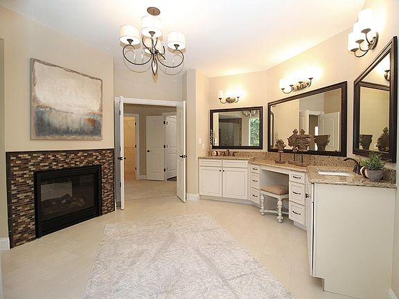 Hearth Room with Stone Fireplace, Vaulted Ceiling and Surrounding Windows, Upstairs Game Room with Coffered Ceiling and Romeo Balcony, Luxury Master Bedroom with Two Way Fireplace in Bedroom and Master Bath, Sculptured Ceiling in Dining Room with Picture Frame Molding and Chair Rail, Cambria Quartz Countertops in Kitchen and Powder Room, Level 4 Antique White Aristokraft Cabinets, Slate GE Kitchen Appliances with Double Oven, Dishwasher and more, GE Beverage Fridge Off Kitchen, Walk In Kitchen Pantry with Glass Door, Soft Close Drawers Throughout Home, Open Spindled Railing at Stairs with Iron Balusters, Widespread Vanity Faucets in All Bathrooms, Framed Mirrors and Adult Height Vanity in Master Bath, Hall Bath and Powder Room, White Two Panel Doors with Venetian Bronze Hardware, Built In Cubbies and Drawers by Garage Door, 16x24 Back Composite Deck with Stairs, Irrigation System,