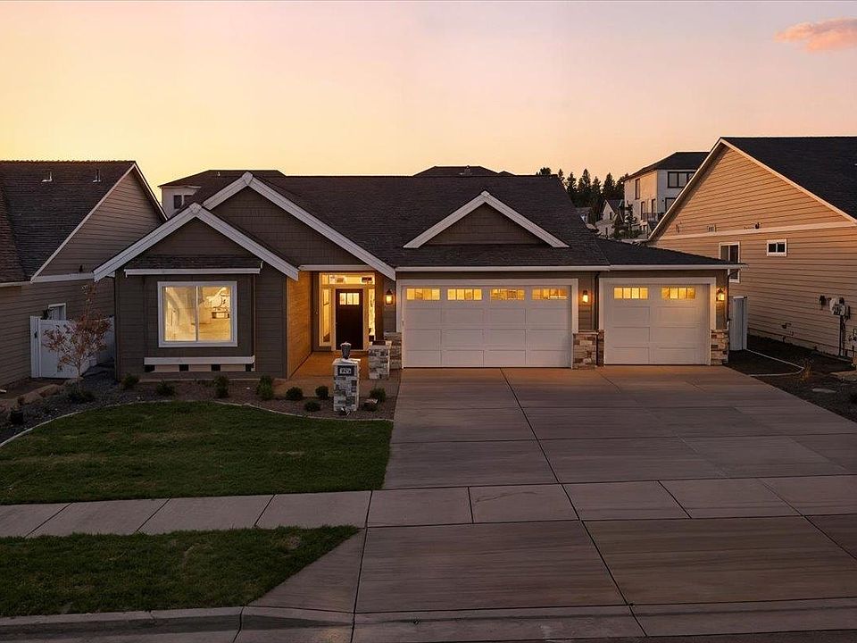 The "TAHOMA" by Camden Homes in Fairmont Estates located in South Spokane Valley. You'll love the open flow of this floor plan and the selections made by the award winning Camden Homes design team, one of our favorite layouts, the Tahoma offers main floor living with the ease of near no step entry. This home is super efficient and offers solar panels, Natural Gas Heat, Central A/C, Crawl Space, 3-Car garage with Openers on all Garage Doors, Stainless Steel Appliances w/Gas Range, LVP in living areas, Stone to Ceiling Gas FP, Covered Back Patio, Front & Rear Landscaping w/Sprinkler System, Fenced Backyard, Amazing primary suite w/Tile Shower, Soaking Tub and Double Vanity! Located in a cul-de-sac, low to no traffic - quiet and close in proximity to I-90, Downtown Spokane and Coeur d'Alene!