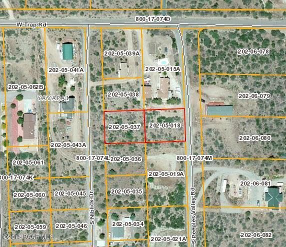 This 1/2 acre plus parcel runs street to street from Peeples Valley Road to Niblick Drive and includes both lots 4 and 47. County owned and maintained roads and nice views to the west and southwest make this a great location for your site built home.