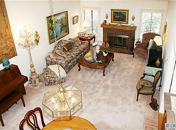 View house. Highly desired Fieldstone-Built Shaddow Lane Townhome located at back of complex overlooking Association pool, spa, & Saddleback Mountains. Grand entry w/soaring ceiling, high palladium window, & marble flooring. Formal light & bright living & dining room with soaring cathedral ceiling, skylight, & fireplace. Spacious family room w/beautiful plank-style hardwood flooring is currently used as giant dining room. Kitchen also has hardwood flooring & tiled countertop, breakfast bar, & new recessed lighting. Large master suite has cathedral ceiling & 2 mirrored closets, dual sinks, large shower w/tiled walls & glass enclosure. Both guest bedrooms boast Saddleback Mountain views & have mirrored closets. Guest bath upstairs has tiled tub/shower w/glass enclosure. Powder room down. Direct assess to oversized 2 car garage w/storage. Lovely private patio w/covered patio. 3.5 miles to beach. Close to shopping, dining, parks, & excellent schools including Courrages Elementary!