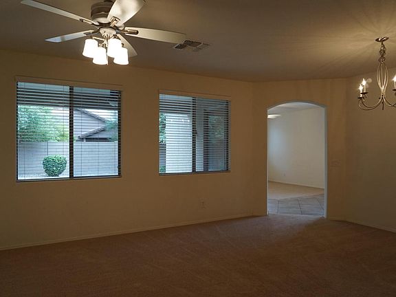 Single story, move-in ready home. Bring your pickiest buyers!Neutral paint and flooring. 4 bedrooms and split floor plan. Well placed kitchen with lots of counter space, a pantry and tons of cabinets. Generous master has a backyard exit, double sinks, separate tub and shower, walk-in closet. Inside laundry with stainless sink. Front yard is low maintenance yet lush desert landscape while backyard has been professionally landscaped with grass, brickwork and a timed sprinkler system. Extended length garage with separate backyard exit. Walking distance to elementary school and large park.