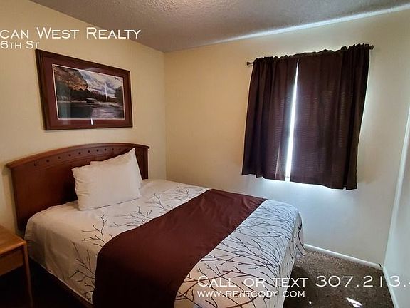 Fully furnished townhouse located behind Albertsons shopping center, close to dining and downtown Cody. Main floor includes the living room, kitchen, dining, and a half bath. Dining area has seating for four people. Kitchen includes fridge, stove, microwave, coffee pot, and other necessities. Upstairs are three bedrooms with queen beds, a full bath, and all the linens necessary. Back yard has a small patio, storage closet, and fully fenced yard. Pet negotiable. Central A/C. NOTE: Availability changes regularly so contact American West Realty before applying. All leases are subject to a $20 Resident Benefits Package. You can review the benefits under TENANT RESOURCES - APPLICATION AND RENTING POLICY or contact the office for more information. _____________________ Information presented is deemed reliable, but is not warranted. Interested parties are responsible for conducting their own inspection to confirm the accuracy, completeness, currency, and status of all information before renting any property. _____________________ General requirements: All occupants 18+ must complete an application $30 application fee per person Submit a government-issued picture ID Prove combined income of 3x monthly rent To see our most updated list of rentals or learn more about our screening process, visit the American West Realty and Management website. _____________________ INVESTORS: are you looking for professional property management or an agent that can help you sell or expand your investment portfolio? Contact American West Realty and Management today to learn about our services! Air Conditioning Central Air Ceiling Fan Fencing Fully Fenced Flooring Vinyl Plank Heat Forced Air Kitchen Dishwasher Kitchen Microwave Kitchen Refrigerator Kitchen Stove / Oven Parking Assigned Utility Black Hills Energy Utility City Of Cody (Water, Electric, Sewer, Trash) Washer/Dryer Hookups