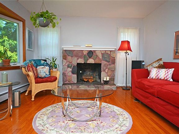 Beautiful expanded cape with large open kitchen with Corian countertops and unique breakfast bar. 3 season room off kitchen leads to beautifully landscaped yard. Large bright living room with wood burning fireplace. Home is on dead end street with wooded lot across street giving true privacy. Residential area with resident traffic on dead end street. More likely to see deer than people on street.
