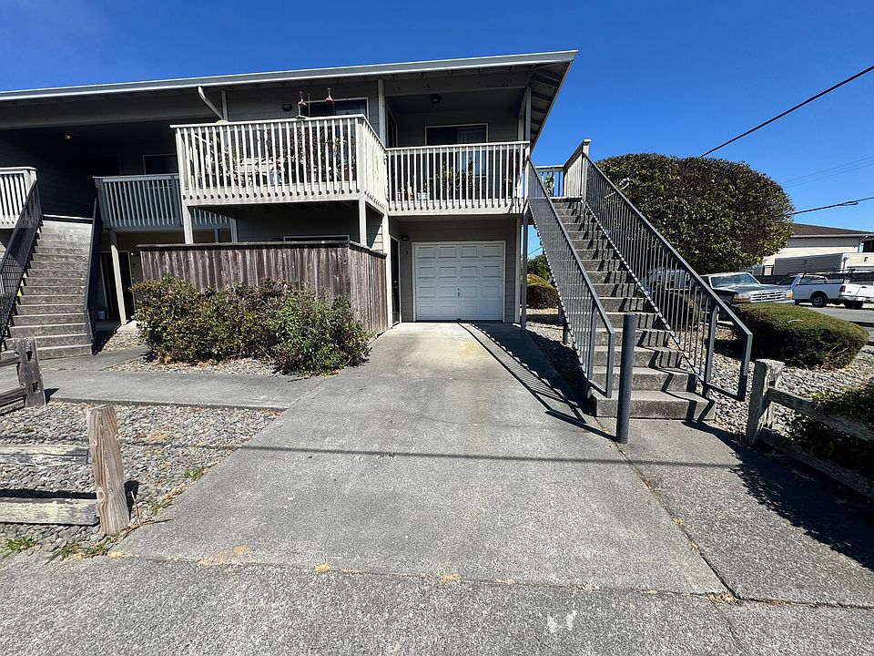 Three bedroom and one bathroom first floor apartment with one-car attached garage. Large living room, open kitchen with plenty of cabinet space, two large bedrooms with oversize closets and large bathroom with tub shower. Small private patio off of living room. Attached garage for small car or extra storage. Newer paint, flooring, window coverings and fixtures. On-site coin-op laundry. Located close to shopping, restaurants, bus line and Highway 101. No smoking and no pets. Landlord pays garbage. Tenant responsible for all other utilities.