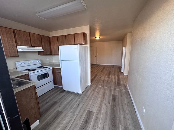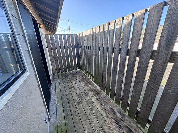 Two bedroom and one bathroom apartment with on-street parking. Upstairs unit with large living room, separate kitchen with plenty of cabinet space, two spacious bedrooms with oversize closets and large bathroom with tub shower. New paint, flooring, window coverings and fixtures. Small fully fenced private patio off kitchen and on site coin-op laundry. Storage garage with alley or hallway access. Located close to shopping, restaurants, bus line and Highway 101. Garbage paid. No smoking and no pets. One year lease. Landlord pays garbage.