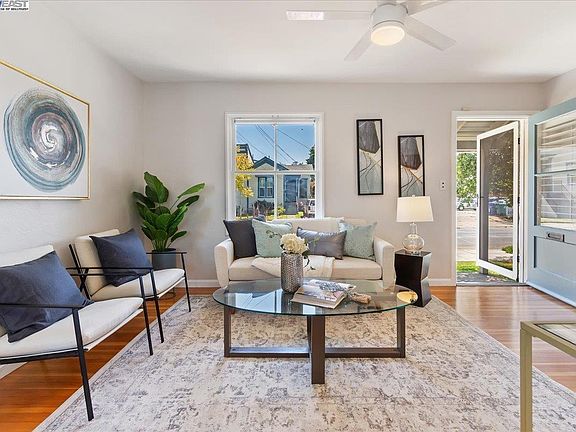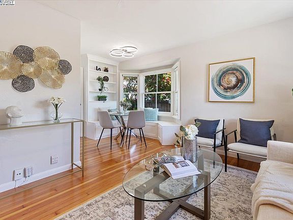 This charming single-level townhouse style home in Alameda's historic Woodstock Co-op is refreshed & move-in ready! Located in Alameda's vibrant West End & situated on a large lot, this light-filled home features 2BR, 1BA, 800 SF of living space, a family/living room, plus a spacious backyard with a charming detatched extra building in the back yard with laundry; this can be used as an office, extra storage, and more. Resurfased hardwood floors throughout. The sunny backyard is perfect for entertaining, relaxing or playing. Open House Sunday May 4th from 2-4 Offers due Tuesday May 13th by 3:00pm