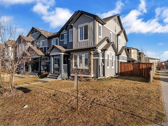 Welcome to this FREE HOLD CORNER UNIT townhouse with DOUBLE DETACHED GARAGE in the family-friendly community of Walker. The main floor features a spacious LIVING AREA, a modern KITCHEN with a large island and pantry, and a dining nook that overlooks the deck and backyard. Convenient main floor laundry, a mudroom area, and a 2PC powder room complete this level. Upstairs, the primary suite includes a walk-in closet and a 3PC ensuite. 2 generous sized bedrooms (one with its own walk-in closet) shares 3PC common bath. Property comes with OVERSIZED DECK, fully LANDSCAPED & FENCED. The unfinished basement awaits for the personal touch. Located very close to schools, parks, HARVEST POINTE PLAZA and major routes including the Henday and Whitemud. GREAT opportunity for FIRST TIME HOME BUYERS & INVESTORS.