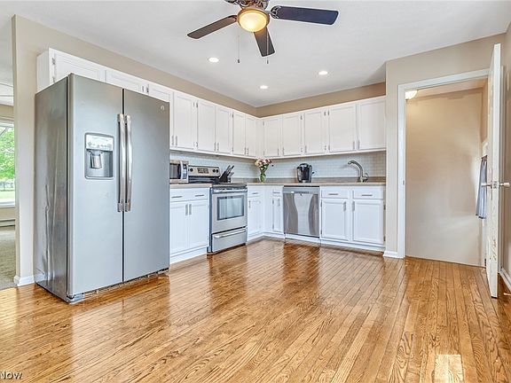 This ranch home will suprise you! Features living room, eat in kitchen with range, refrigerator and dishwasher staying. 3 bedrooms on the first floor, hall bath plus a half bath in the master. The suprise is the basement! Wide stairway leads you to the huge rec room there are 2 bonus rooms that were previously used as bedrooms. And a nice sized laundry/ storage room. The backyard includes a detached 2 car garage, plenty of patio space, fully fenced in yard which backs up to the ball fields. So no neighbors behind you. Make this home a must see!!