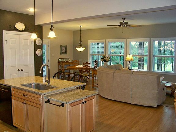 There's nothing to do but move into this immaculately kept and impeccably maintained 3BD/2BA on a 0.88 acre Golf Front lot with potential 4th bedroom (septic complies) and upstairs Bonus Room. Extended Double Decks, a Screened Porch the Family Room & Kitchen all look out to an incredible Golf front vista from Tee to Green of the Whispering Woods course. The Kitchen is clad with subway Tile backsplash, Granite counter tops a Center Island with farmhouse sink & Breakfast Bar, a generous sized Pantry and is also open to the Dining room area. The Family Room with full window wall exits to the extended Decks on one side and to the lovely Screened Porch with ceiling fan and screening underneath to protect from insect intrusion on the the other.