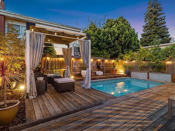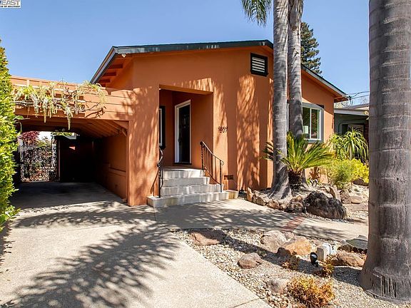 Built in 1914 and lovingly updated/remodeled by the present owners, this charming vintage Craftsman home features 2+ bedrooms, 1 bathroom, traditional living and dining rooms, a large recently updated kitchen, a den (home office or potential third bedroom), and curb appeal to spare! Situated on a sweet, tree-lined street filled with vintage houses from the same era, this central Bronze Coast location offers an unrivaled central island location within minutes of anywhere in Alameda. Features include tray ceilings, vintage oak floors, a fireplace, and abundant natural light throughout. The kitchen was updated in 2025, the bathroom remodeled in 2018. New water heater (2024) and new interior paint and light fixtures (2025). The sunny backyard includes a swimming pool (see disclosures for operational updates), a pool cabana, raised planter beds with citrus trees, and expansive wood decking. Attractive drought-resistant landscaping in both front and back. Just blocks to Franklin Park, Blue Dot Coffee and Encinal Nursery, and less than 1 mile to downtown Park Street's many amenities. A lovely home in an exceptionally convenient central location! Must see!