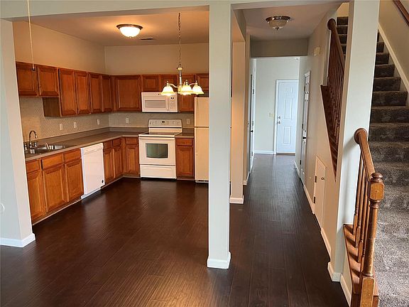Move in ready, maintenance free living. Main level consists of a living room w/ an eat-in kitchen & 1/2 bath. Upstairs master bedroom has 2 separate closets. Laundry room has extra storage and W/D stay. $120 monthly HOA can be $110 on auto deduct-covers exterior(siding/roof/trim), exterior insurance, landscaping and lawn. There also is an annual $165 HOA fee. One Car Garage with Additional Guest Parking Close By - Quick and Easy Access to I64, Metro Link, SAFB & Shopping & Dining.