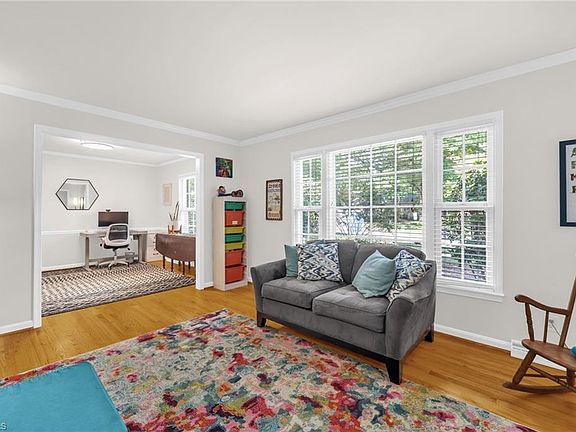 Timeless character defines this classic brick ranch in Forest Valley. The curb appeal is enhanced by a charming building just beyond the house that includes a garage, wired workshop, and an unfinished walk-up loft space. Inside, there are spacious rooms with tasteful updates. The oversized kitchen is the heart of the home, featuring professionally painted cabinetry, solid-surface countertops, and space for gathering. Just off the kitchen is a walk-in laundry room with custom shelving. The inviting sunroom overlooks the deck and lawn and is the perfect spot to relax year round. The updated bathrooms blend modern updates with original midcentury tile. The formal living room, dining room, and cozy den with built in shelves add to the home’s flow and functionality. Out back is privacy, mature landscaping, play space, and another storage building tucked behind the garage building. A brick walkway ties together the deck, sunroom, and garage, creating an ideal flow for indoor-outdoor living.