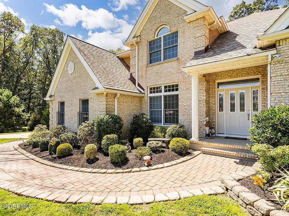 Are you looking for calm peaceful serenity? This stunning brick-front estate sits on 1.4 private acres at the end of a cul-de-sac in one of Wall's most sought-after neighborhoods. Offering 4/5 bedrooms & 3.5 baths, the home features a main-level office/bedroom, gourmet eat-in kitchen w/ Thermador appliances, granite counters, & custom cabinetry. A grand foyer opens to a formal dining room & bright living area w/crown moldings, tray ceilings, & a stylish reversible fireplace. Additional highlights incl hardwood floors, 2-zone heat/AC, newer 50-year roof, full basement, WHOLE HOUSE GENERATOR, long sweeping driveway and 3-car garage. The secluded backyard oasis boasts a flagstone patio, Viking grill, 10-person hot tub, and space for a pool—an outdoor retreat you'll never want to leave.