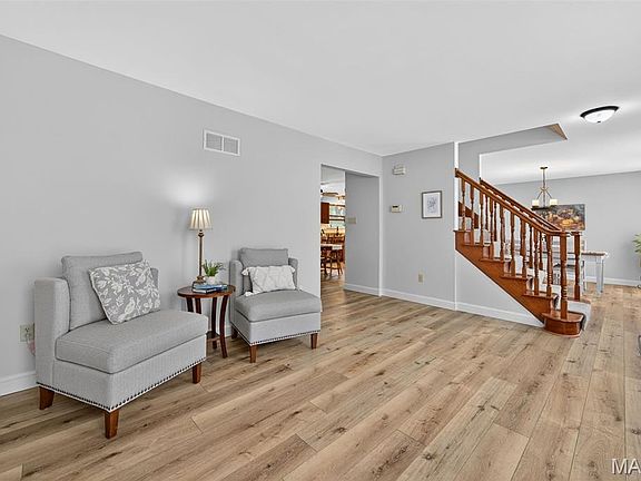 Welcome to this spacious two-story home with 4 bedrooms and 3.5 baths, nestled in a peaceful cul-de-sac. Offering over 2,600 sq. ft. of finished living space, this property has been beautifully maintained and updated. The main level features stylish newly luxury vinyl plank flooring, while newer carpet enhances comfort upstairs and in the finished lower level. The kitchen boasts granite countertops, stainless steel appliances, gas stove, and refrigerator that stays. An open floor plan flows seamlessly into the family room with a cozy wood-burning stove. The main level also includes a large laundry room with a utility sink and a separate dining room for gatherings. Upstairs, the primary suite offers a renovated en suite with double sinks, jetted tub, and separate shower. The fully finished lower level adds a family room, rec room, bar, and additional full bathroom. Outdoors, enjoy a fenced backyard with mature trees, sprinkler system, and dedicated gas line for grilling—perfect for entertaining and creating lasting family memories.
