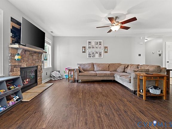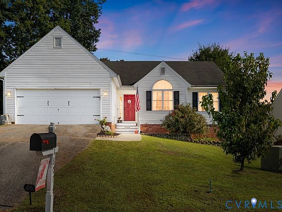 Welcome home to this wonderfully maintained 3-bedroom, 2-bath ranch with a spacious 2-car garage. The foyer opens to a light-filled, open-concept living room with a cozy stone gas fireplace, adjoining dining area, and a well-appointed kitchen offering abundant cabinetry and a pantry. Down the hall, you’ll find a convenient laundry closet, two comfortable guest bedrooms, and a stylish full bath. The private primary suite features a generous walk-in closet and a relaxing ensuite bath. Step outside to enjoy the fully fenced backyard with a large deck—ideal for entertaining or quiet evenings at home. The garage includes a pull-down attic that is fully floored for all your storage needs. Perfectly situated just minutes from Powhite Parkway and Route 288, with easy access to shopping, dining, and everyday conveniences.