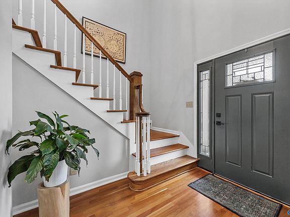 Discover this beautifully updated home in desirable Blevins Cove! Remodeled kitchen features marble countertops and double oven, with cherry hardwood floors throughout the main level. Spacious primary suite boasts an updated bath with a tile shower and two walk-in closets. Don't miss the newly built "Murphy Closet" for extra storage! Three bedrooms and two bathrooms upstairs with new light fixtures and fans, and updated carpet and paint. Enjoy the large family room with a wood-burning fireplace, office with built-in bookcases, and a versatile fully finished basement with LVP flooring. Private backyard with sprawling deck, fire-pit, and new landscaping are ready for summer!