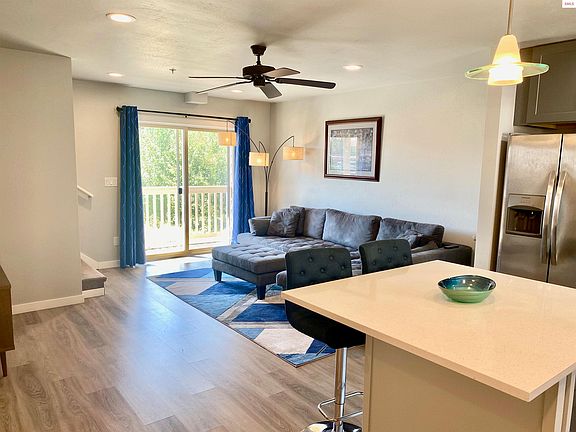 This beautiful 2 bedroom, 1 1/2 bath Condo looks brand new and is meticulously maintained.  When you pull into your 2-car attached garage on the ground level you'll follow lush carpeted stairs to the first floor.  Here you'll discover an open concept floor plan with luxury vinyl plank floors complimenting the spacious furnished living room featuring a ceiling fan and access to a private balcony.  The kitchen is complete with an island (including bar seating), SS appliances, quartz countertops, tiled backsplash, refrigerator, and pantry.  The indoor laundry closet (washer & dryer included) and half bath are also on this floor.  As you pass your private balcony and continue up the carpeted stairs to the 3rd floor, you'll access two comfortable sized bedrooms with ceiling fans, a full bathroom, and linen closet.  The Northside Terrace Condos are conveniently located to Shopping, Schools, Public Library, Downtown Sandpoint, Schweitzer Ski Mountain and Lake Pend Oreille!  The Homeowner's Association includes water, sewer, trash and snow removal and the unit is wired for Ting High Speed Internet.