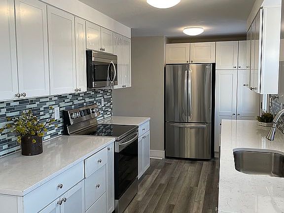 Completely renovated. Large back yard with alley access. Located in culdesac New hydrostatic heat system. New water heater new appliances. Quartz counter tops. Move in ready. Vaulted ceilings New siding and windows and doors