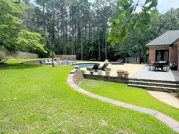 Have the best of both worlds! This home is Perfectly located minutes from historic and picturesque Downtown Southern Pines! Where you can enjoy the laidback lifestyle with quaint boutiques, restaurants, breweries and recreation yet close to Fort Bragg! As you enter this home you are greeted with vaulted ceilings, spacious open floor plan and natural light in the main living area with gas log fireplace. Start your mornings in the sunny breakfast area with a great view of the rear yard and inground pool featuring a hot tub spa. Privacy fencing and extended concrete patio make a wonderful area for relaxing and entertaining. Home has a split floor plan, the master bedroom suite provides privacy and includes spa tub, walk in shower, vanity area and large walk-in closet. Just some of the many upgraded features include 3/4 inch solid Hickory flooring, Quartz countertops, crown molding, easy clean tilt in windows and recently updated guest baths. The fun continues with a insulated and wired workshop along with a pirate ship play set.