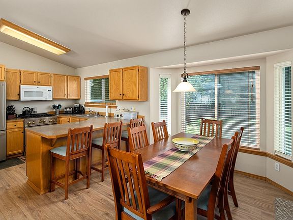 Mountain Meadows subdivision! This lovely home is located right where you want to be. The bicycle/walking path to Dover or downtown is just steps away. The stores, lake, schools, spot bus stops, library......everything is very near including the parks. 1710 sq ft home with 3 bdrms & 2 1/2 baths. Open floor plan with a formal living room and a family lounge by the fire. Enjoy your secluded backyard with lovely high shrubs all around. Covered cement patio with skylights. Fenced backyard perfect for your pets. 2 car attached garage & addl parking outside. Vaulted ceiling, gorgeous hardwood flooring, arched windows, & hardwood cabinets are just some of the beautiful touches. The back deck is wired for a hot tub and the central air is recently added. Enjoy interacting with your neighbors from your front deck or relaxing in your private back yard. Sandpoint is the ideal resort location for summers on Lake Pend Oreille and winters on the Schweitzer's slopes 30 minutes away.