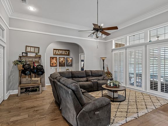 Welcome to this beautifully remodeled 4 bedroom home designed for both comfort and functionality. Multiple living areas provide flexibility for everyday living and entertaining, while the open concept kitchen features a generous island and flows seamlessly into the second living area. Step outside to an expansive covered patio that spans the length of the home, with a pergola on one end creating a warm, inviting outdoor retreat. Inside, high ceilings, plantation shutters, and extensive crown molding enhance the home’s timeless appeal. The fourth bedroom is currently utilized as a home office, ideal for remote work or a flex space. Situated on a rare half acre lot in the heart of Canton, this property offers space, style, and convenience. Owned solar panels add energy efficiency and long term savings.