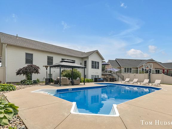 Beautiful 4 bedroom, 3.5 home in Byron Center Schools. Completely updated/remodeled. Enjoy the new kitchen from cabinets to quartz counter tops to flooring. Sip your morning coffee next to the fireplace. The primary bedroom is large with 2 separate walk in closets. Also on the main you find an additional 2 bedrooms and an additional full bathroom. The lower level has new carpet, room for an office and a theatre room. A 3 stall finished garage with plenty of storage and separate wall for tools and yard supplies. In the back yard there an in-ground pool and newer gazebo for you to relax. Just a well cared for updated home.