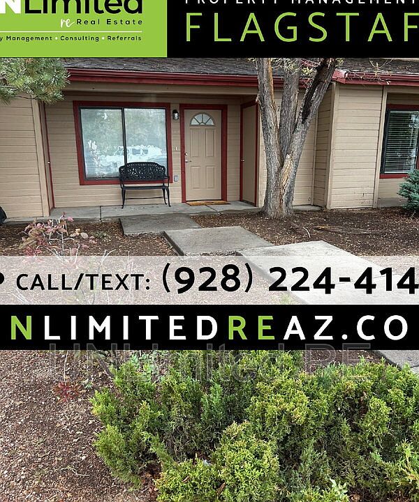 Conveniently Located 3 bedroom, 2 bath townhome. FURNISHED! Affordable townhome, 3 bedroom, 2 bath furnished, located in central Flagstaff, on Main Street. Off-street parking, garage parking, washer dryer hook-ups, dishwasher, glass-top stove and a brand new stainless steel fridge. Close to city transit, schools, mall, and lots of quaint Flagstaff local eateries! Approximately 3 miles to NAU and downtown Flagstaff. Available: NOW Lease term: 9 months with option to renew for 12 month term Pets: Yes, max 2 cats and/or dogs Furnished: YES Appliances Included: refrigerator, electric stove/oven, dishwasher Utilities: Tenant pays utility flat fee Parking: 1 Garage parking, one assigned spot, unassigned street parking Laundry: Hook ups Heating: Furnace Cooling: None Smoking: NO smoking Govt vouchers: No Security Deposit: up to equal to 1x rent Application: $60/person (refundable if not processed) Admin fee: one-time 7% of one month's rent Professional management provided by UNLimited RE. Resident Benefits Package, $43.95/mo, includes renter's insurance, filter delivery, identity protection, rewards, etc.