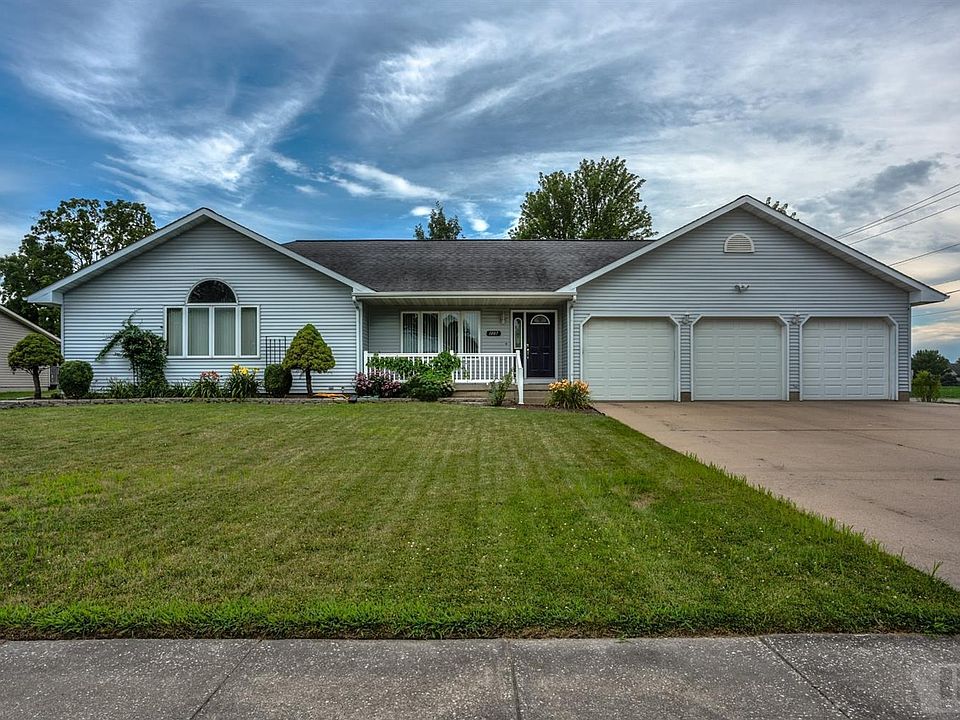 Located in newer subdivision this ranch offers 4 bedrooms, 3 baths, updated white kitchen featuring quartz counters, stainless range and dishwasher as well as microwave. Main level laundry room with folding table and desk area and there's a half bath! Vaulted ceiling in the living room, formal dining with hardwood flooring, sliding glass doors to the newer composite deck. 3 bedrooms including master with walk in closet and master bath. Lower level is finished with family room, bedroom with egress window, a non conforming bedroom and a full bath with shower. Extra's include central vacuum, sump pump with battery back up and a radon mitigation system is installed for your peace of mind.3 car garage completes this amazing home. Just Reduced! its a steal at this price!