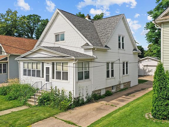 Located near parks & EAA/Wittman Airport, this 3BR/1BA home w/ newer roof, vinyl siding & vinyl windows greets w/ enclosed porch & touch of old-world charm. Original 5-panel doors+hdw. Living room w/ wood-burning FP. Formal dining w/ laminate floor. Kitchen w/ black stainless appliances. Convenient 1st floor full bathroom. 2nd floor offers primary bedroom w/ walk-in closet, 2nd bedroom w/ walk-in closet, 3rd bedroom, and expandable attic w/ potential for add'l bath. Behind home is an extra-wide 2.5 stall garage w/ extra parking! Great opportunity for investment property or primary residence!