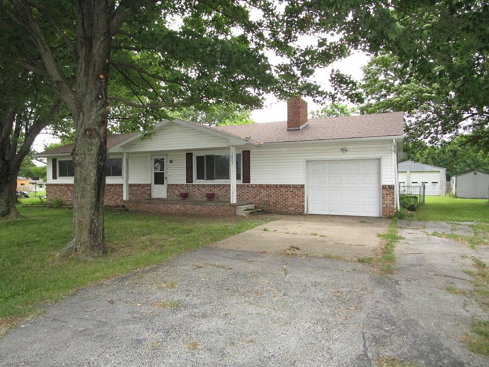 Ranch home offers 3 bedroom 2 bath, wood insert fireplace, large backyard, 24x30 detached garage & 10x16 storage building.