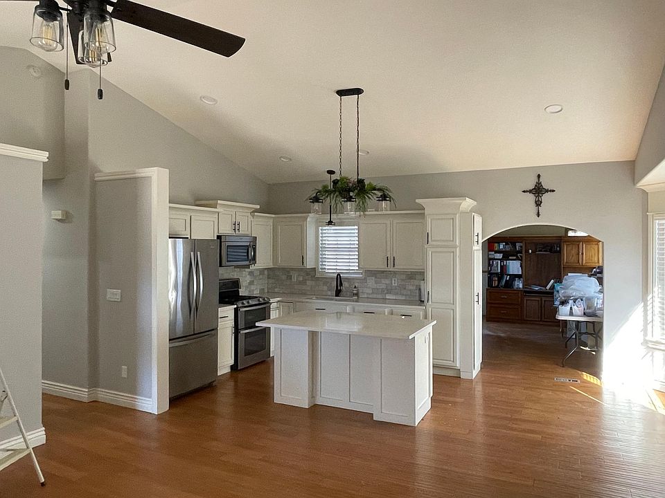 Three bedrooms and two full baths upstairs with nice update open kitchen and living room plus formal dining room , Bsmt with one bedroom and one full bath nice family room with small office and good sized storage room, two attach garage and one detach garage , nice fenced back yard with one concrete gazebo very good sized front yard with nice sized driveway . Goddard school district. Tenants to pay all utilities including trash service