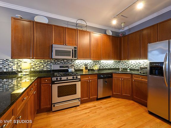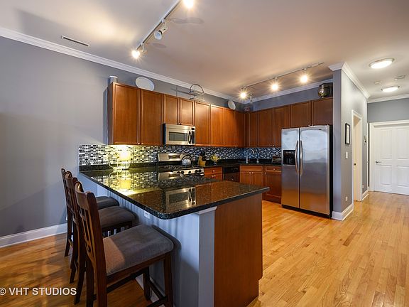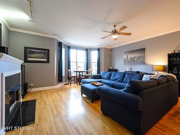 Beautifully updated, Extra Wide, Roscoe Village condo with 10' ceilings and parking. Large living and dining room area, Chef's kitchen with granite, Cherry cabinets, Stainless steel appliances, Breakfast bar, Sunny bay windows, Hardwood floors throughout, Gas fireplace, Washer/dryer in-unit, and gated parking lot in back included in the price. Master bedroom suite with walk-in closet, Spacious marble master bath with dual vanity and separate shower and tub. Professionally managed association with ample reserves. Just Steps to the Addison Brown Line, Trader Joe's, shopping, and dinning!
