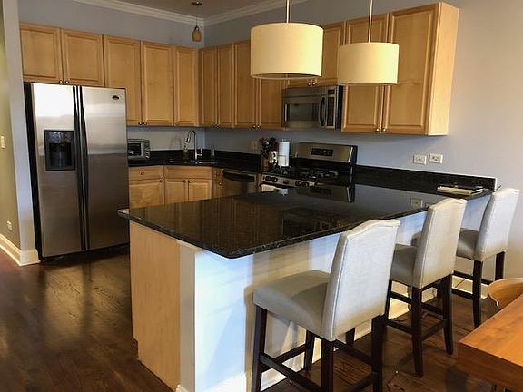 Over 1300 sq ft, extra-wide condo w/10' ceilings, in elevator bldg., 2bed, 2bath, w/large beautiful open kitchen, tons of storage, in unit washer/dryer, granite, hardwood floors, fireplace, balcony, brkfast bar, SS appls. Mstr suite w/walk-in closet & 2nd closet, double sinks, sep shower & soaking tub. Includes 1 secured prkg space. Steps to Brown Line and restaurants & shops of Southport Corridor, Roscoe Village and Lincoln Ave.