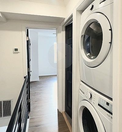 Modern finishesFull tubIn-unit washer and dryerNatural lightGleaming hardwood floorsCentral air-conditioningCeiling fans