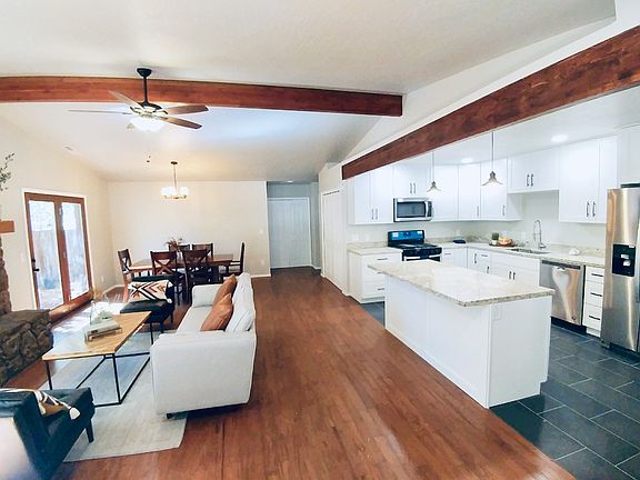 This beautiful single family home sits on a 7,000 square foot lot that backs up to a ponderosa pine forest that is State Trust Land. The well reviewed elementary school, proximity to Downtown Flagstaff, Northern Arizona University, and local hiking and biking trails make the University Heights area one of the most desired locations in all of Flagstaff. The two level, 5 bedroom, 3 bath layout includes a beautiful master suite with gas fireplace overlooking the forest. The suite is completed with a walk in closet and brand new master bathroom with a double sink vanity, walk in shower, and deep soaking tub. The open concept floor plan at the front of the house ties the main living area, kitchen, and dining areas together beautifully.