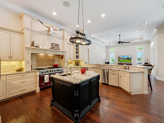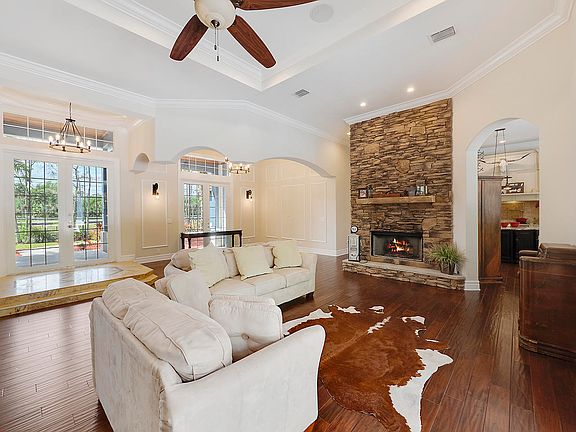 This Incredible 4/4/3 plus an office will not disappoint. The eat in kitchen features new granite counter tops, upgraded cabinetry, commercial grade Viking range and a pantry. There is a formal dining area as well as a formal living room featuring a rustic stone gas fireplace. Open family room with French doors that lead to covered patios and stunning pool/spa. The huge master suite features a wet bar and a large walk in closet. The master bathroom features new granite tops, dual sinks, roman style tub, separate shower with dual shower heads and a water closet. Guest bedroom #2 has its own private bath, whereas bedrooms 3 and 4 share a full bath. There is a fourth full bath that serves as a cabana bath. The home features extensive crown moldings and wood and marble floors throughout.