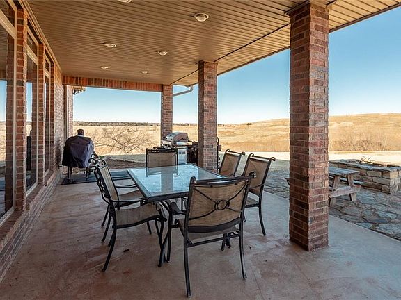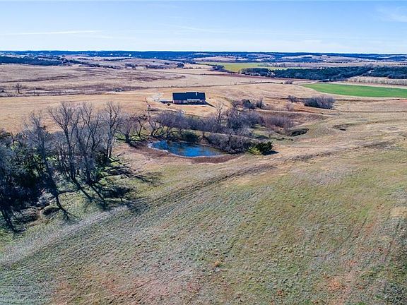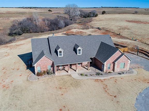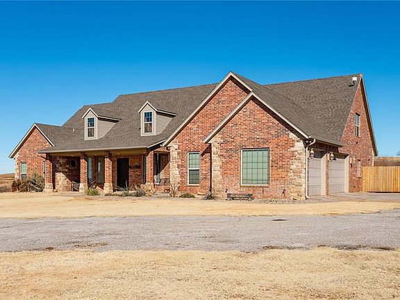 Ponderous on the hill! Enjoy the beautiful Oklahoma skies from the porch of this spacious 4 bedroom 3.5 bath home that sits almost center of an amazing 30 acres. The open concept living and kitchen area overlooks the backyard with a beautiful wall of windows where the back of the acreage can be seen. This eat-in kitchen is a cook's dream. It features granite island and counters with stainless steel appliances and a double oven. The spacious master enjoys an en-suite with walk through shower to the half bath off the garage hall. Two bedrooms share a jack-n-jill bath with double corner vanities. The remaining bedroom has a private bath. This home also features a study , formal dining area and upstairs bonus room. From the garage you will find an attic with private staircase and lots of storage as well as a in ground storm shelter. Wildlife enthusiasts can enjoy the variety of wildlife on the acreage.