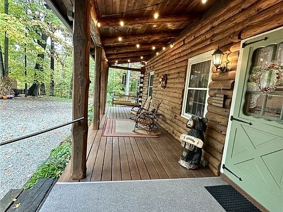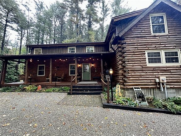 An absolutely gorgeous log home situated on 1.59 wooded and beautifully landscaped acres. 3 bedrooms, 3 1/2 bath and 2,321 sq ft above grade. The open kitchen is a dream, with great counter space and plenty of storage space. In the center of the kitchen is the island with a breakfast bar. The kitchen is open to the dining room which has several windows looking out at the beautiful yard. As you leave the kitchen and walk into the grand 16 x 22 living room which boasts a vaulted ceiling, you feel the sense of comfort, pull up a chair in front of the stone front fireplace and escape the stress of the world. The master bedroom with master bath is on the first floor and two good-sized bedrooms and two baths are on the second floor. The 9x15 loft overlooks the living room and makes a nice space for an office area or a cozy reading space. The basement is 1,437 sq ft with a finished 15 x 38 recreational room, a workshop room, laundry room and a 13 x 14 pantry/storage area. The outbuilding has 2 bays for parking and an enclosed shed roof addition for extra storage. Come tour this lovely home with a resort feel and fall in love.