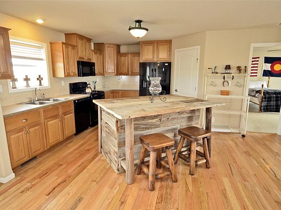 Once you enter this high prairie valley, you will know you have entered your own tranquil world. Darling home with real hardwood floors and open concept great room.Unique features throughout-kitchen island constructed from barn wood sourced from this property,historical stage stop and bunkhouse at the road be used for camping, storage, potting shed or ? ,custom aviary or chicken coop. The entire property is fenced (field fencing), cross fenced and gated at entrance. New wood and smooth wire fencing around house and new smooth wire fencing for pastures.The property has a great set up for horseback riding- the front pasture has a unique obstacle course, dressage arena (needs updated) 100X200 arena was planned but sellers will leave posts, 2 loafing sheds. Small pen and barn currently used for goats. All appliances included plus extra refrigerator in basement and weather station in LR. Huge crawl space under basement. Property sourced barnwood bed in guest bedroom included.