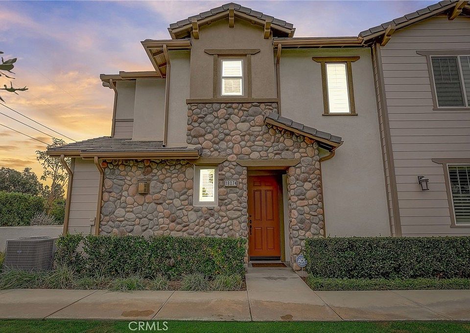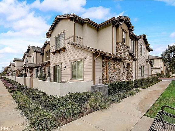 Discover upscale comfort and modern elegance in this luxurious corner unit townhome at 18074 Magee Lane in Yorba Linda. Boasting over 2,000 sq ft of sophisticated living space, this home features soaring vaulted ceilings and a thoughtfully designed layout. The heart of this home is the stunning, renovated gourmet kitchen equipped with quartz countertops, designer tile backsplash, and top-of-the-line GE Profile stainless appliances. The large center island, complete with bar seating and pendant lighting, is ideal for entertaining and casual meals. The open-concept layout seamlessly connects the kitchen to a spacious living area, where a cozy fireplace and practical built-ins create a welcoming atmosphere. The convenience of a first-floor bedroom suite adds to the allure, featuring a large bedroom and a modern bathroom with a shower. Upstairs, a versatile open loft with a built-in desk caters to those working from home or desiring additional leisure space. Two additional spacious bedrooms share a well-appointed full bathroom with dual sinks and a tub-over-shower design. The primary suite is a true retreat, highlighted by a luxuriously updated bathroom with dual vanities, a soaking tub, step-in shower, and exquisite tile finishes. The custom-designed walk-in closet by Cabinets Plus offers generous storage space. Adding to the home’s appeal is the energy-efficient tankless water heater, stylish plantation shutters throughout, and a 2-car garage with built-in cabinets, Gorilla rack storage, and an epoxy-coated floor. Outdoor living is equally impressive, with a beautiful travertine patio providing serene views of the surrounding green space. Community amenities include a pool and spa for added enjoyment. The property's prime location offers easy access to diverse dining options, shopping at Yorba Linda Station, breweries, cafes, and the Nixon library. This Yorba Linda gem combines luxury, convenience, and prime location into an exceptional living experience.