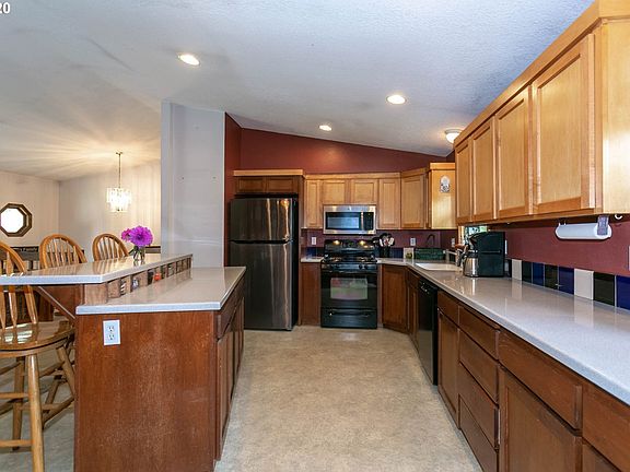 Looking for dual living? This is it with kitchen, family room and bedroom downstairs. A fabulous lot with green house, raised garden beds, mature trees & plants. Open kitchen up with corian counter, large island, and recently remodeled main bath. Lower level offers easy no step access through garage Garage partially converted to utility room with sink & storage. Small RV parking.Exterior painted & roof replaced. All on quiet culdesac within mins of parks, outdoor fun & skiing on the mountain.