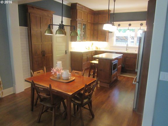 Stunning and immaculate craftsman home in South La Grande. Numerous beautiful remodels throughout, including exterior and interior paint, total bath renovation, and comprehensive custom remodel of kitchen that touches on the historic style of the home. Beautiful backyard with a covered deck and large storage shed. Off street parking and a touch of a mountain view from the upstairs windows. This one won''t last long!