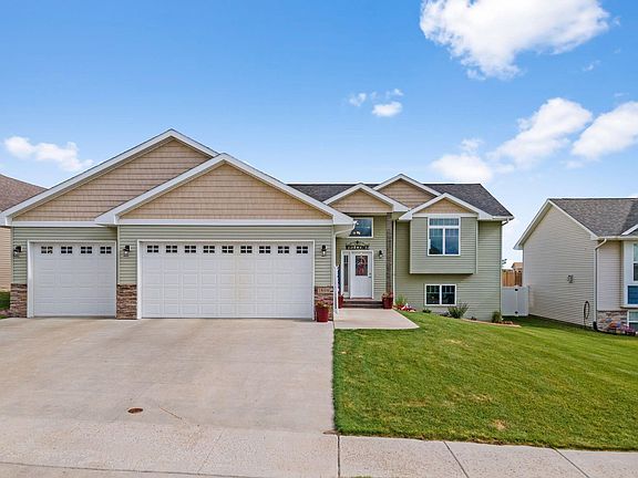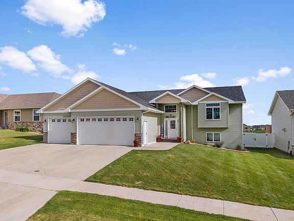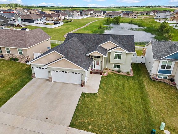 Check out this gorgeous 4 bedroom, 3 bath and triple garage home in NW Minot in the Pheasant Run addition. Walk into the large open foyer and be welcomed to the comfort of this amazing home. Open floor plan with large spacious kitchen with plenty of counter space, cabinets and quartz countertops. Large living room with vaulted ceilings. Patio doors in the dining room lead out to the large deck that overlooks the neighborhood pond. 2 large bedrooms on the main floor with the primary bedroom having a spacious bathroom with double sinks and walk in closet. Downstairs is a large family room with patio doors that walk out to the plush green yard perfect for entertaining or playing basketball on the 16 x 24 stamped concrete court. The side privacy fence is vinyl but the back fence is wrought iron which is perfect to see the gorgeous green space and pond. The laundry room has lots of storage with extra cabinets, countertops and shelving. 3 stall garage that is finished and heated with a floor drain. The front porch is stamped concrete with lots of nice landscaping. Check out this amazing property before its gone.