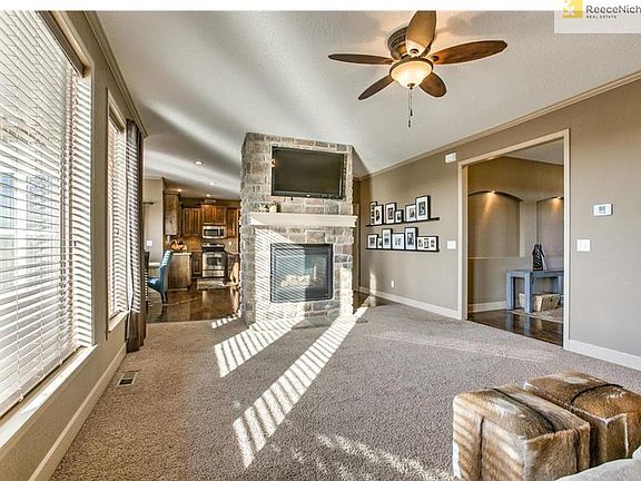 Country living in the city: A Beautiful and well-maintained custom built home that backs to green space and is within walking distance of the Bridle Ridge elementary school. The open floor plan features a see-through fireplace and nice, spacious rooms. There are granite countertops throughout the house, custom cabinets, and hardwood floors. The kitchen has a breakfast island and a great pantry. The backyard features a saltwater sports pool surrounded by a stamped and stained concrete patio.