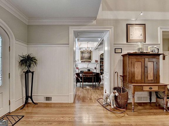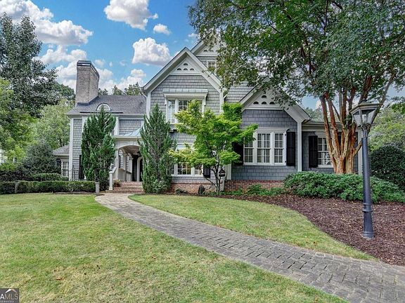 Presenting a traditional cedar shake Hamptons style home, located in the gated St Ives Country Club neighborhood. The home is on a .49 acre golf course lot and is located on the 18th hole. It offers spectacular views and an easy stroll to the St Ives Clubhouse. Upon entering, you'll be greeted by the gleaming hardwood floors that guide you through stately living spaces, where sophistication meets comfort. Transom windows with plantation shutters allow an abundance of natural light throughout the home. The formal dining room offers space for elegant dinners and the living room with fireplace and built-ins is designed for both grand entertaining and intimate gatherings. The open-plan great room seamlessly connects to a chef's kitchen. The main floor master bedroom is spacious with a cozy fireplace and spa like ensuite featuring separate vanities, a large walk-in shower and elegant soaking tub. Huge custom closet allows for tons of storage. There are three additional large bedrooms on the upper level, complete with both Jack and Jill and ensuite baths. Finished terrace level with bar, exercise room, office and half bath, with plenty of additional space for storage or expansion. Step outside to an expansive covered back porch and additional large screened side porch. A lovely paver patio completes the outdoor entertaining spaces, all offering stunning golf course views. The property also includes an adorable She-shed/ Garden Cottage with white picket fence. Experience a lifestyle of elegance and ease in this exceptional Johns Creek home, where every detail has been meticulously curated.