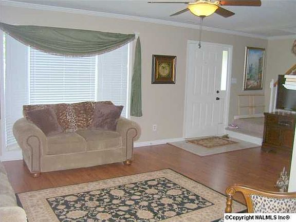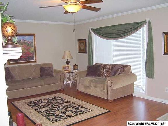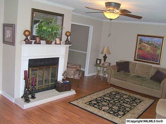 Call Patti 256-227-9180 to see this updated home! You'll love this home w/large bedrooms each with their own bath & another half bath downstairs, formal Dining Room & spacious Great Room w/gas log fireplace & bay window. Wood-like laminate floors in Great Room & Dining Room. Kitchen w/tile floors, lots of cabinets & counterspace, smooth top stove/oven, & tile countertops & backsplash. Sunroom w/tile floor not included in square footage New ceiling fans & lights. Water heater & roof new in 2011